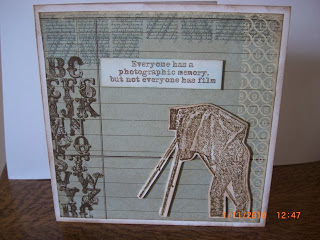These papers are a godsend when you need a quick card as the background is done for you. Even better when you need a card for that trickiest of themes .....Men! All I've done is stamped the cameraman image and it was ready.